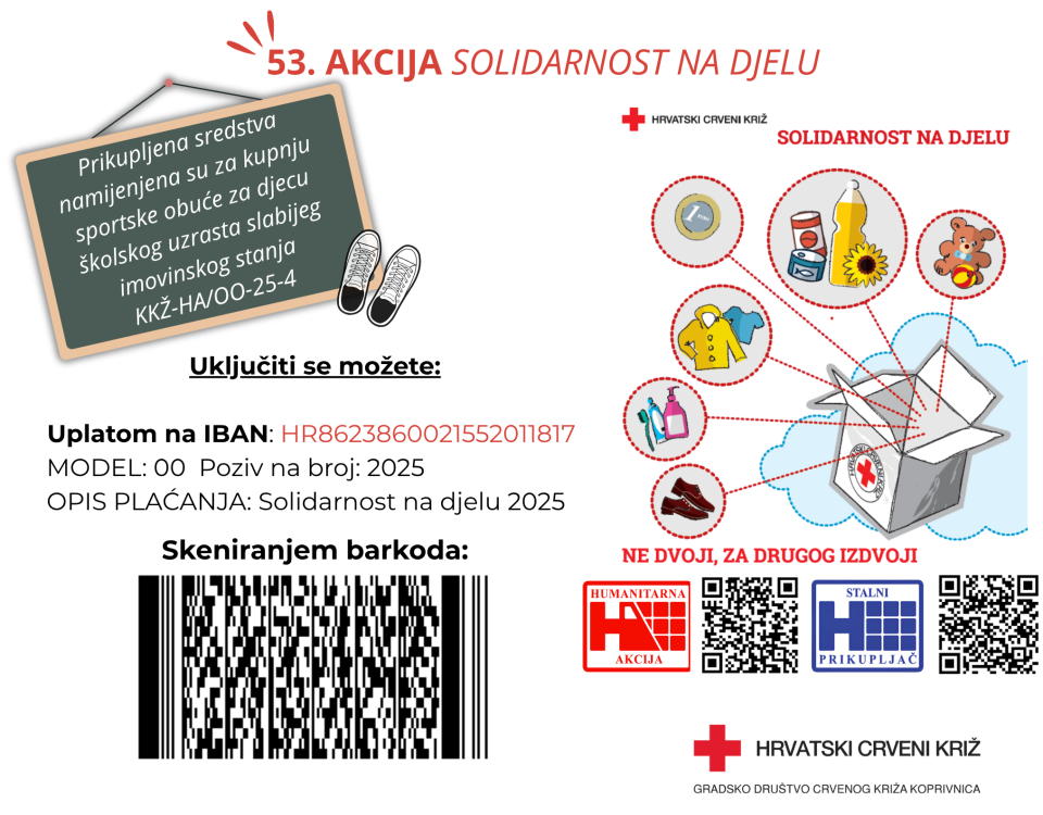14. listopada 2025. (utorak) akcija će se održati od 10 do 13 i od 13,30 do 17 sati u prostorijama Gradskog društva Crvenog križa Koprivnica, Herešinska 33.