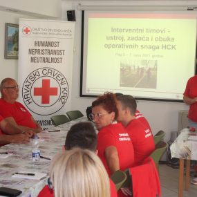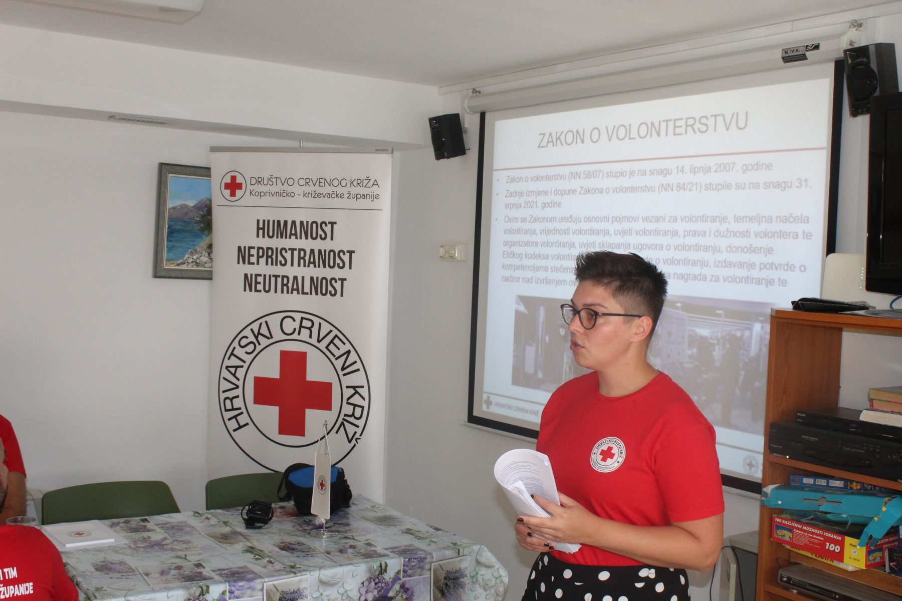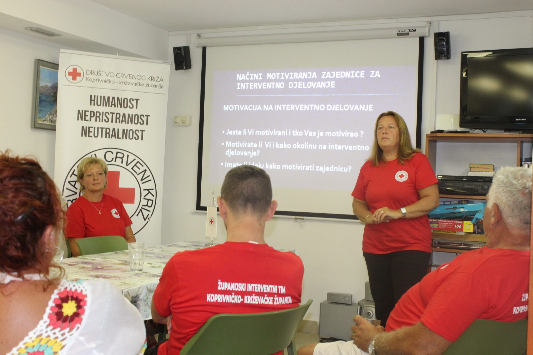 Na edukaciji i treningu sudjelovalo je 37 članova županijskog i gradskih interventnih timova. U uvodnom obraćanju Đurđica Trbus, predsjednica Društva Crvenog križa Koprivničko-križevačke županije i Adela Sočev, ravnateljica Društva Crvenog križa Koprivničko–križevačke županije i GDCK Koprivnica zahvalile su im na dosadašnjem trudu i zalaganju te istaknule veliku važnost volontera u djelovanju društava Crvenog križa naše županije. Osim u redovnim aktivnostima, spremni su za djelovanje u izvanrednim situacijama, a to su i niz puta dokazali.