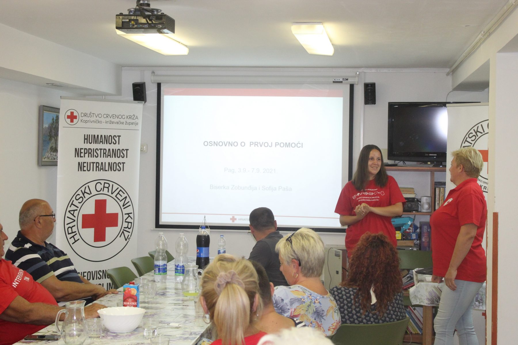 Dubravka Jaković, predsjednica GDCK Đurđevac i volonterka Mirela Paša na Pagu su imale izlaganje o motivaciji za interventno djelovanje, dok je Stjepan Lončar, dipl. ing. sigurnosti održao prezentaciju „Sudjelovanje članova interventnih timova kao podrška na masovnim cijepljenjima protiv COVID-a 19 i zaštita od požara“, a Karlo Ganžulić, stručni suradnik za projekte u GDCK Koprivnica o Zakonu o humanitarnoj pomoći HCK i Pravilniku o materijalnoj humanitarnoj pomoći. Sofija Paša i Biserka Zobunđija volonterke GDCK Đurđevac održale su radionicu prve pomoći, na kojoj su okupljeni obnovili i utvrdili svoje znanje, a Davor Japec, volonter GDCK Križevci prezentirao je temu „Organizacija smještaja u kriznim situacijama“. Kristijan Kolarek  i Zvonimir Šašek, voditelji ŽIT-a i GIT-a, bili su voditelji kondicijske vježbe koja je odrađena odlaskom do vjetrenjača na vrh brda iznad Paga.
