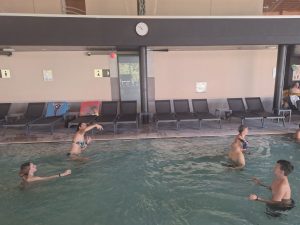 Nakon edukativnih radionica članovi Kluba slobodno vrijeme proveli su rekreirajući se u bazenima s termalnom vodom. Zajedno su igrali odbojku u vodi, plivali i vježbali. Vježbe u vodi korisne su za dijabetičare zato što potiču cirkulaciju, olakšavaju kretanje i pomažu u kontroli šećera u krvi.