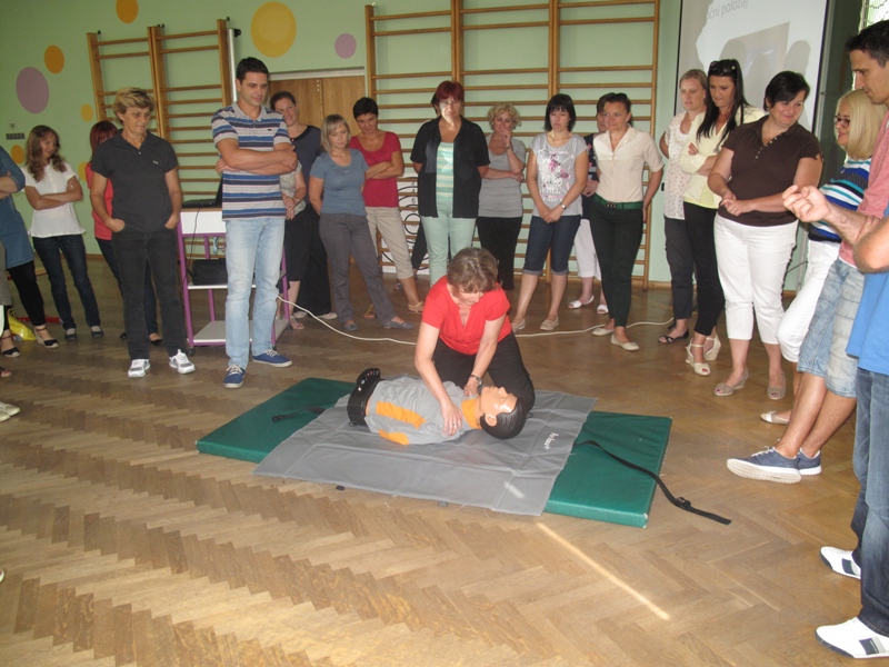 KOPRIVNICA – Gradsko društvo Crvenog križa Koprivnica od početka rujna provodi edukaciju prve pomoći te osposobljavanje odgojno-obrazovnih radnika za pružanje prve pomoći učenicima sa zdravstvenim teškoćama. Cilj ove edukacije je da nastavnici usvoje osnovna znanja o bolestima i određenim stanjima kako bi mogli prepoznati promjene u ponašanju učenika i pojavu prvih simptoma te sa usvojenim vještinama staloženo i bez panike pružiti adekvatnu prvu pomoć i tako spriječiti daljnje komplikacije, a u iznimnim situacijama, spasiti život. Usvojenim vještinama odgojno-obrazovni radnici stječu određenu sigurnost kod pomaganja učenicima, nauče kontrolirati paniku i bolje se nose sa stresnom situacijom koja često sprječava pravovremenu reakciju.