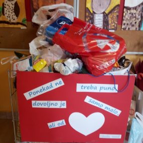 Tako su učenici i njihovi mentori Osnovne škole Braća Radić  organizirali akciju prikupljanja donacija te tom prilikom prikupili više od 200 kilograma raznih prehrambenih i 197 komada higijenskih potrepština namijenjenih za potrebe Socijalne samoposluge.