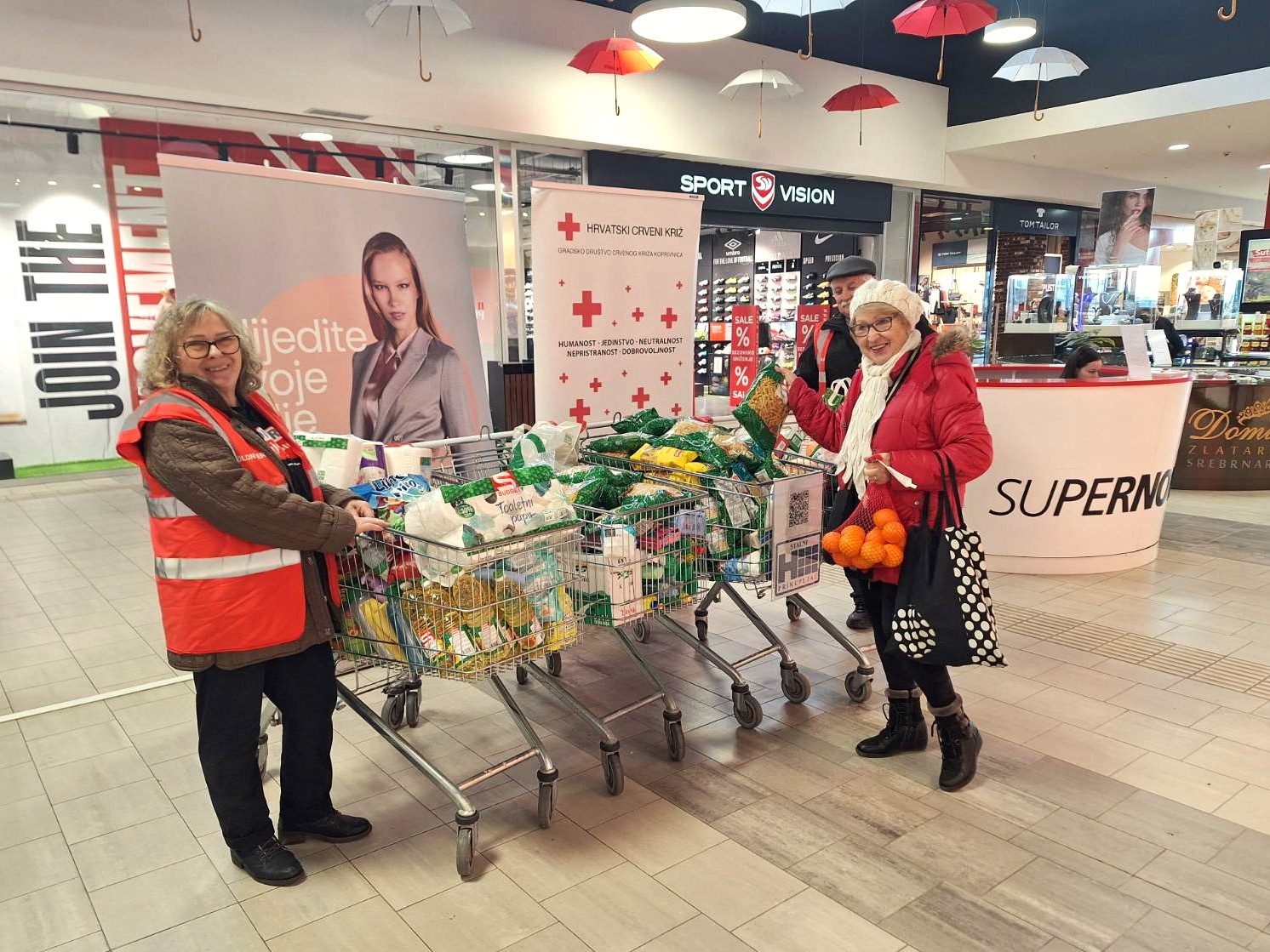 KOPRIVNICA – Blagdansko razdoblje je za nama, no sugrađani u socijalnoj potrebi trebaju našu pomoć tijekom cijele godine. U prvim ovogodišnjim akcijama prikupljanja donacija za Socijalnu samoposlugu, koju je Gradsko društvo Crvenog križa Koprivnica organiziralo u trgovačkim centrima, građani su i ovaj put kod naših volontera ostavljali prehrambene i higijenske proizvode te ćemo ih u idućim danima podijeliti sugrađanima slabijeg materijalnog stanja.