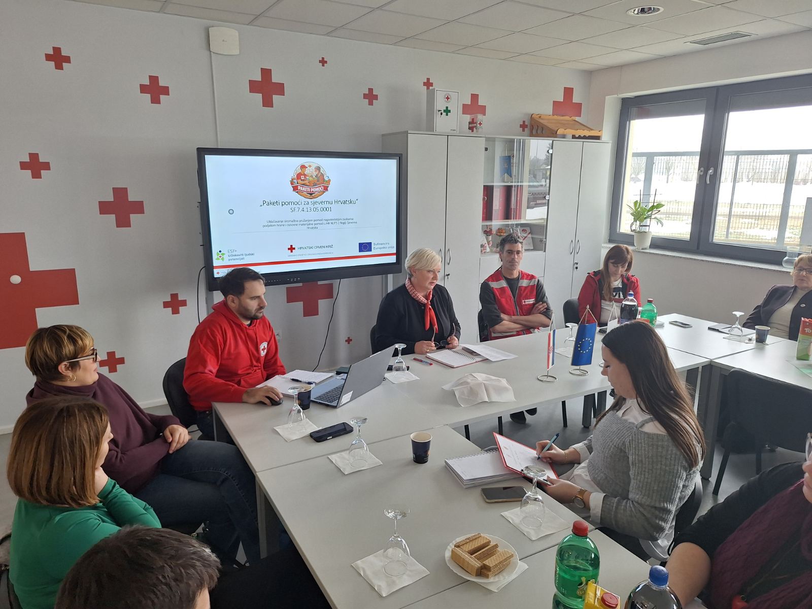 Provedbom projekta „Paketi pomoći za sjevernu Hrvatsku“ ublažit ćemo posljedice siromaštva i materijalne deprivacije više od 8.000 korisnika s područja Koprivničko-križevačke, Varaždinske, Međimurske, Krapinsko-zagorske i Zagrebačke županije podjelom paketa hrane i osnovne materijalne pomoći do kolovoza 2028. godine. Zbog velikog geografskog područja provedbe i broja potencijalnih korisnika ovaj složeni projekt iziskuje visoku razinu koordinacije nositelja i 21 partnera te je nakon predstavljanja projekta i njegovih ciljeva održan i radni sastanak kojeg je vodila ravnateljica GDCK Koprivnica Adela Sočev. Okupljeni predstavnici društava Crvenog križa tom prilikom su usuglasili sve parametre potrebne za početak provedbe aktivnosti.