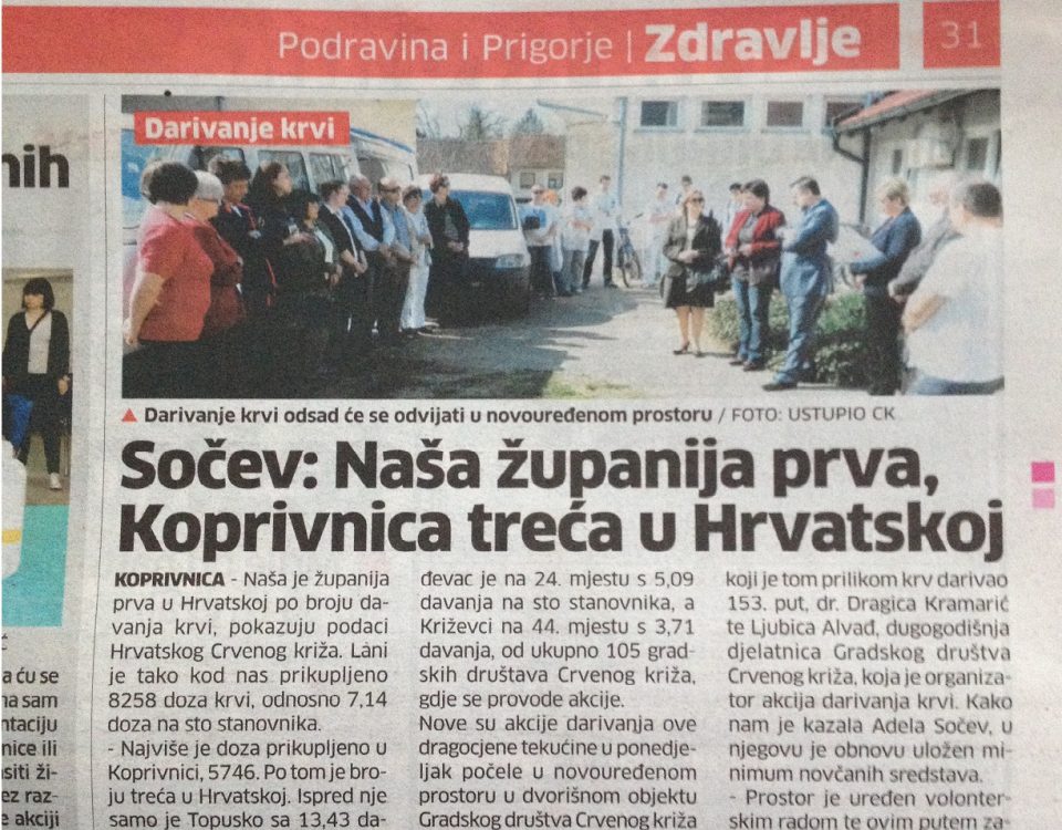 KOPRIVNICA – Gradsko društvo Crvenog križa Koprivnica održalo je u suradnji s Hrvatskim zavodom za transfuzijsku medicinu akcije dobrovoljnog darivanja krvi od ponedjeljka 17. ožujka do […]