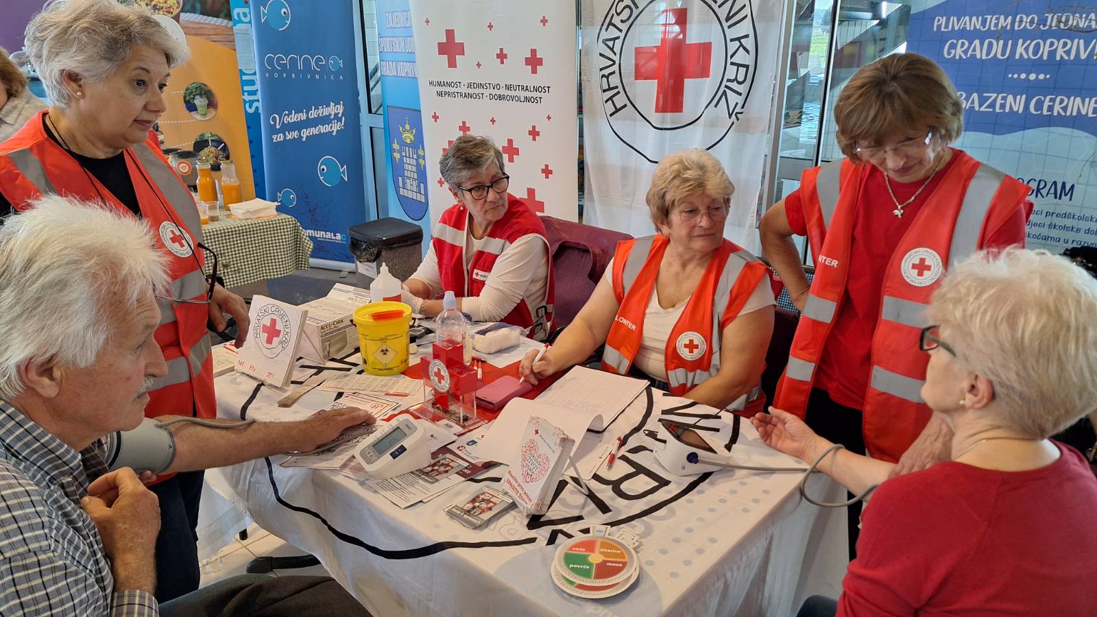 U predvorju bazena djelatnici i volonteri koprivničkog Crvenog križa pričali su s građanima o zdravlju te zainteresiranima mjerili tlak i razinu šećera u krvi. Ukazivali su i na štetan utjecaj opijata te prezentirali tzv. pijane naočale, koje simuliraju utjecaj alkohola ili droga. U obilježavanju Svjetskog dana zdravlja sudjelovale su volonterke koprivničkog Crvenog križa, umirovljene zdravstvene djelatnice, koje su svojim iskustvom uvelike pomogle zainteresiranim posjetiocima. Na Cerinama je bilo i zdravih voćnih i povrtnih vitaminskih smoothie napitaka, koje je pripremio Smutek – domaći kutek.