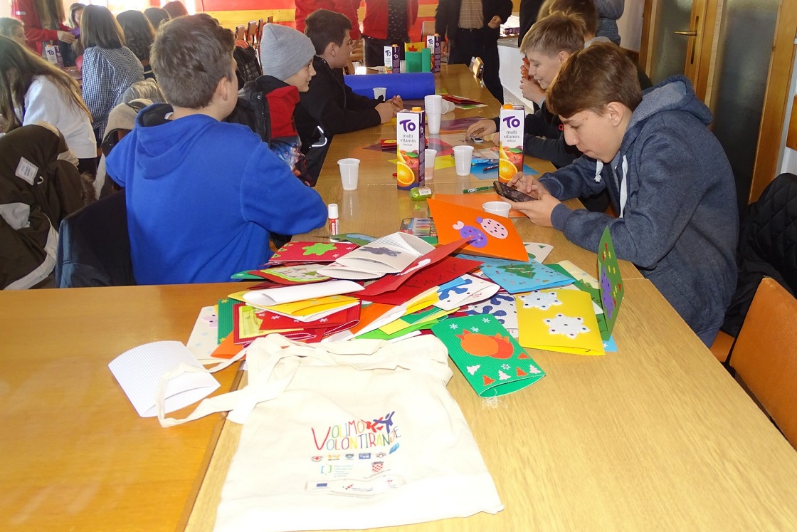 Projektom ‘Volimo volontiranje’ naše najmlađe i dalje odgajamo za volontiranje te ih potičemo na humanost, solidarnost, nepristranost, dobrovoljnost itd. Malom gestom i znakom pažnje, izradom i poklanjanjem blagdanskih čestitki, volonteri će uljepšati nekome blagdansko vrijeme, istovremeno poručujući kako se na njihovu pomoć već sada može računati.