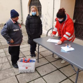 KOPRIVNICA – U okviru suradnje između Međunarodne federacije društva Crvenog križa i Crvenog polumjeseca i Hrvatskog Crvenog križa provodi se projekt „Pomoć Republici Hrvatskoj zbog izbijanja epidemije COVID-19“. Između ostalih, jedna od aktivnosti projekta je nabava i raspodjela 3 500 torbi i paketa hrane „Vaš dar za pravu stvar“ za korisnike zajamčene minimalne naknade. Sadržaj paketa hrane u jednoj torbi predviđen je za dvije osobe i 15 dana, a u paketu je: 3 kg brašna, 1 lit ulja, 1 kg riže, 1 kg soli, 1 kg šećera, 2 kg tjestenine, 5 kom juhe u vrećici, 8 kom ribljih konzervi, 8 kom mesnih doručka i 800 gr marmelade.