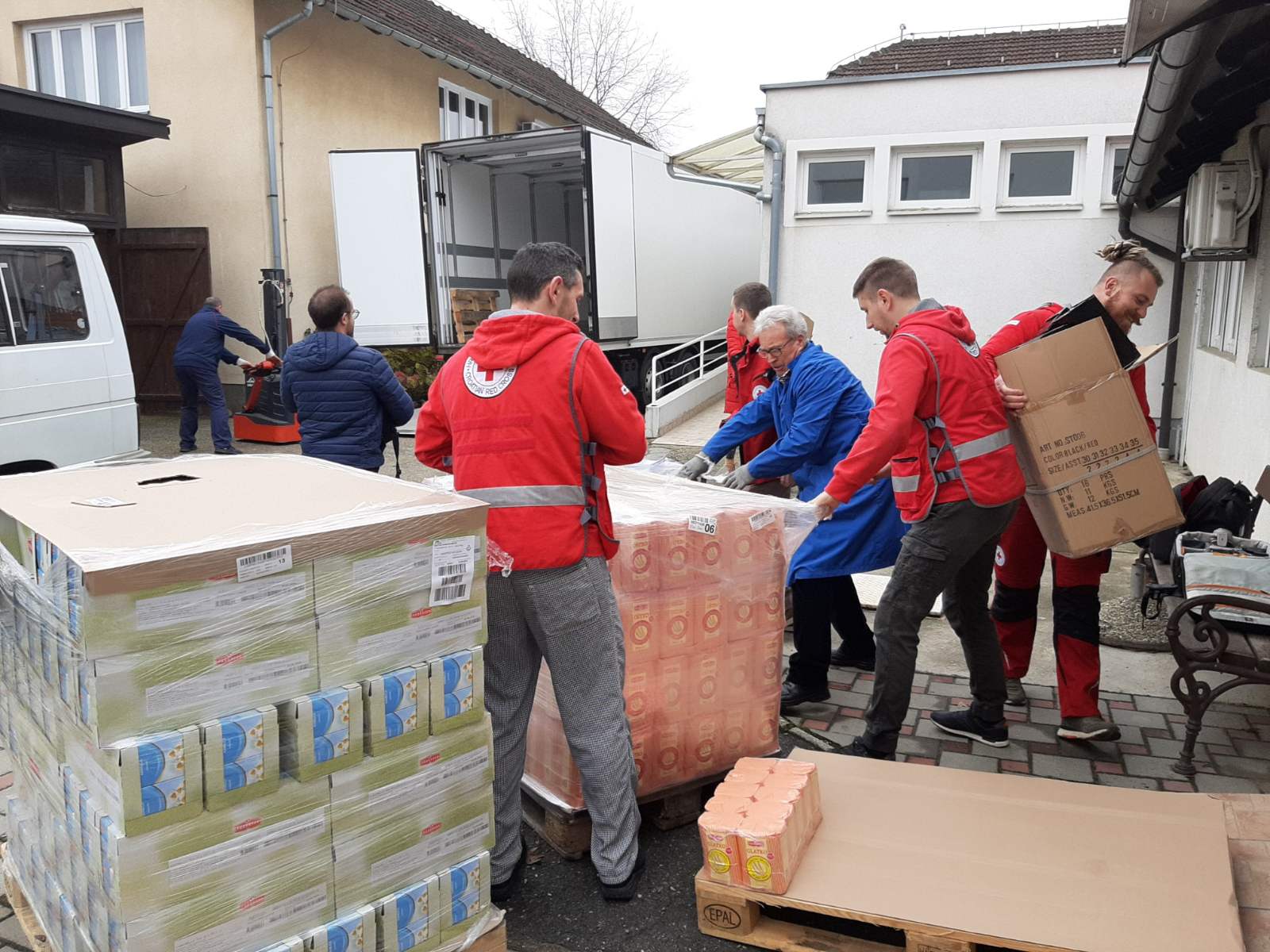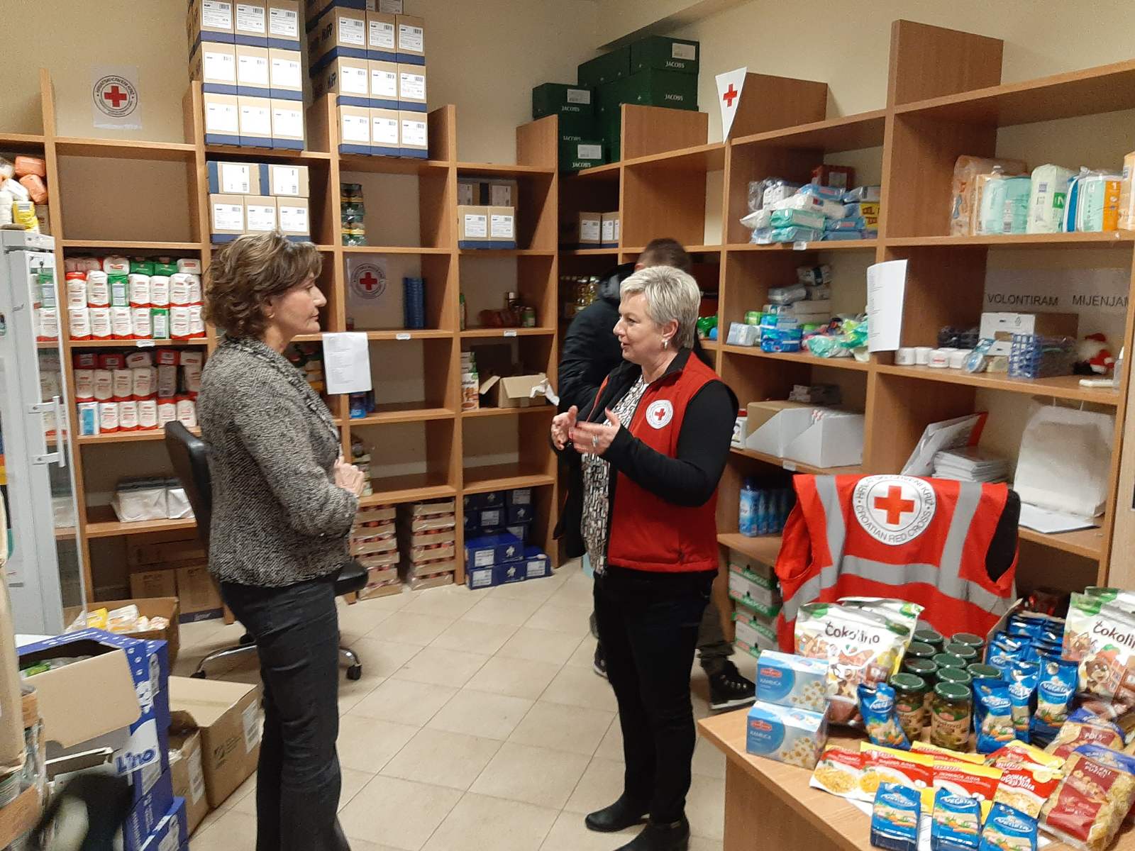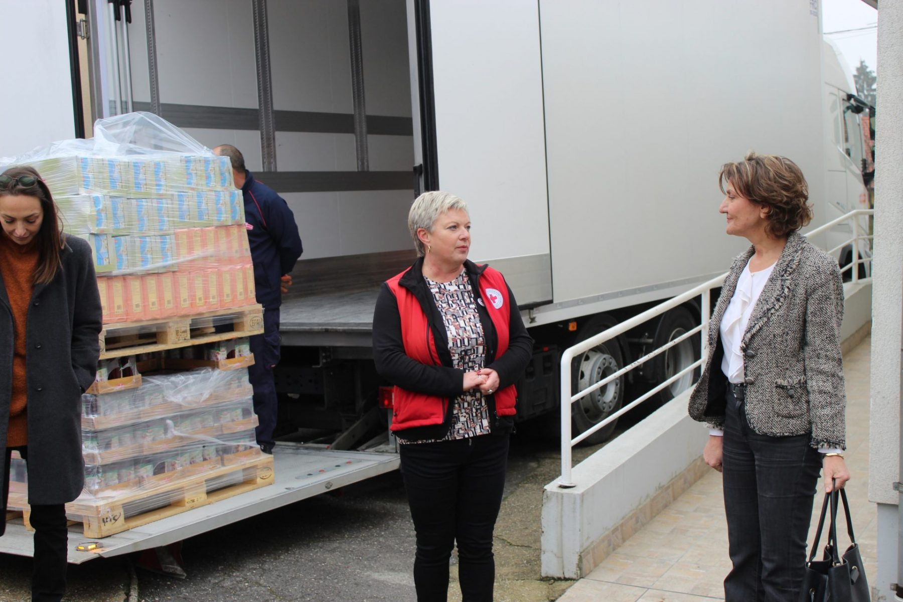Uz djelatnike, na primopredaji donacije bili su volonteri koprivničkog Crvenog križa. Svi zajedno odmah su prionuli poslu odnosno krenuli s istovarivanjem donacije iz kamiona koji je zauzeo skoro cijelo dvorište. Na Međunarodni dan volontera oni su tako ponovno darovali svoje slobodno vrijeme za pomoć drugima, a Martina Dalić im je čestitala njihov dan.