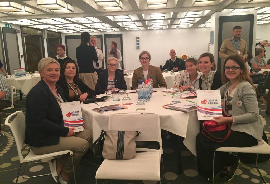 Upravo je Gradsko društvo Crvenog križa Koprivnica, koje je uspješno provelo svoj prvi projekt Socijalna košarica, financiran iz Europskog socijalnog fonda, a usmjeren ka pribavljanju hrane za pomoć potrebitima, zbog toga i sudjelovalo na konferenciji u Bruxellesu. Iskustva korištenja ESF sredstava i fonda FEAD tako su podijeljena na Konferenciji, a projekt Socijalna košarica posebno je interesirao kolege iz crvenih križeva iz Cipra, Austrije, Mađarske i Francuske. Ravnateljica Adela Sočev prenijela je iskustva u korištenju fonda svojim kolegama, a ujedno, tekst o projektu Socijalna košarica, već je ranije objavio Ured Crvenog križa EU u Bruxellesu. Predstavnice HCK, Lorena Brkić i Adela Sočev aktivno su sudjelovale u tematskim radionicama iz kojih će se prijedlozi iskoristiti za budućnost FEAD-a. Tako su naše članice predložile da FEAD, koji se mahom oslanja na pomoć volontera u podjeli hrane, podrži u budućnosti angažman koordinatora volontera koji bi uspostavljali mrežu volontera, po uzoru upravo na koprivnički projekt Socijalna košarica. S obzirom da se druge zemlje susreću s problemima volontera, prenesena su iskustva dobre prakse iz Hrvatske, gdje se s volonterima sklapaju volonterski ugovori. Također je predloženo da se u sklopu FEAD mreže razvije suradnja s međunarodnim prehrambenim kompanijama u cilju donacija hrane pred istekom roka trajanja.