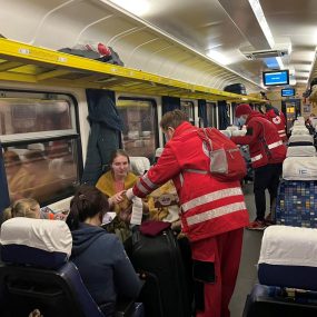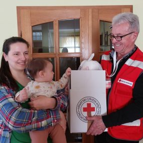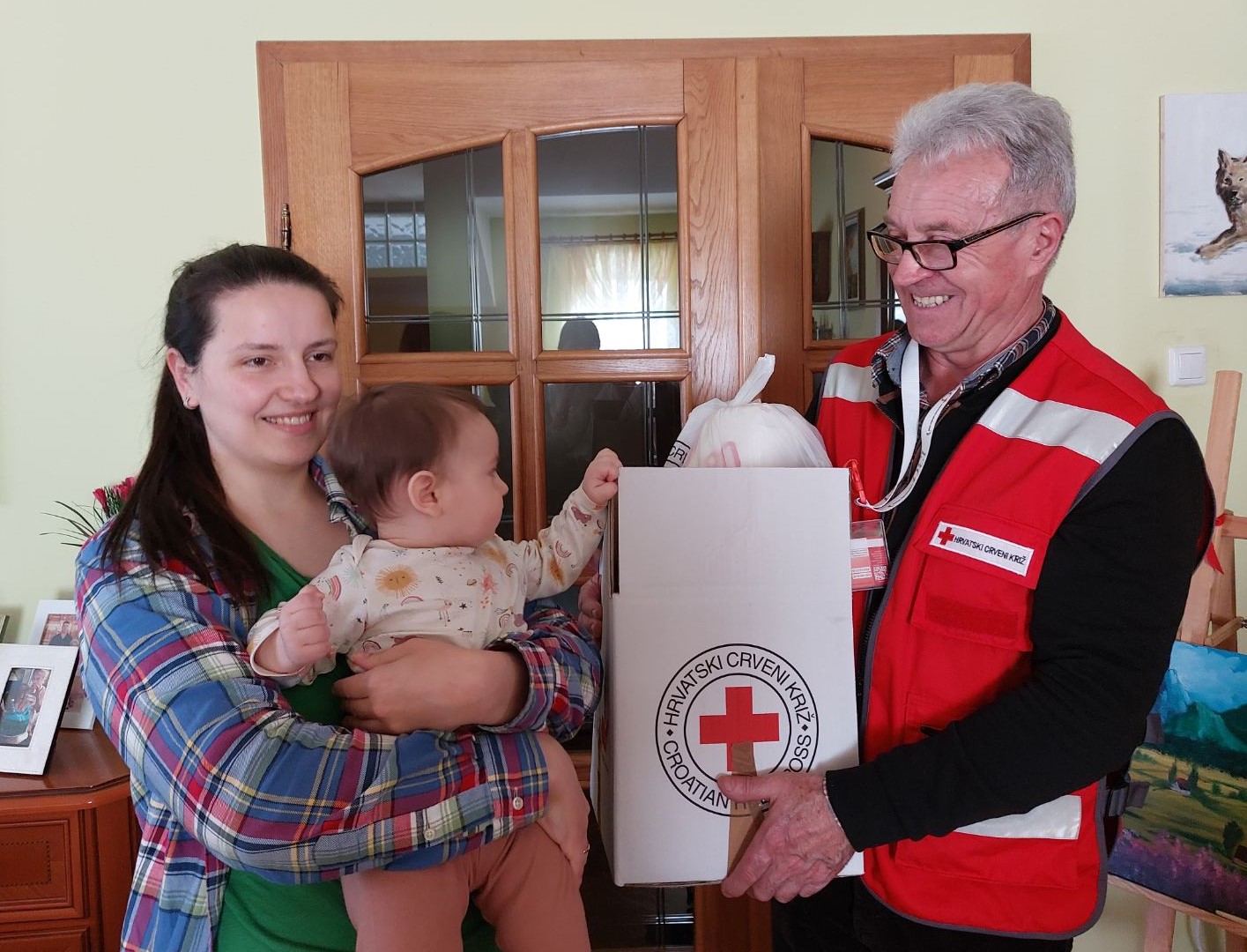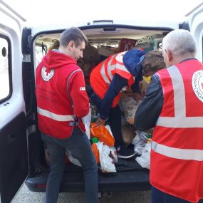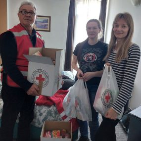 Donacije razvrstavamo i popisujemo, zajedno s našim volonterima. Potom pripremamo pakete s pomoći, koje redovito dijelimo raseljenim osobama smještenima na području Koprivnice. Zajedno s volonterima pomažemo i osobama iz Ukrajine koje u Hrvatsku dolaze vlakovima iz smjera Mađarske. Dijelimo im pomoć u hrani i higijeni, a pri tom je vrlo važna i topla ljudska riječ ili osmijeh, s kojim ih dočekujemo.