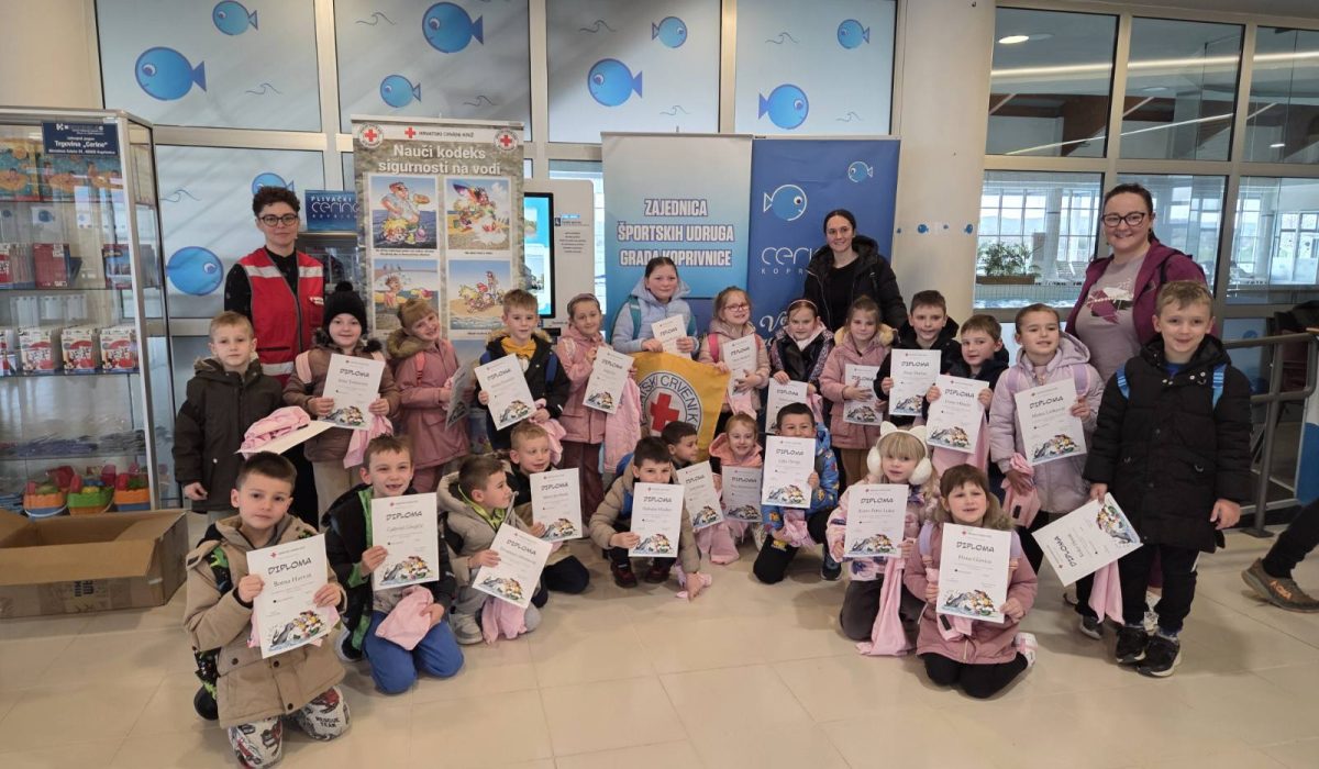 KOPRIVNICA – Na Gradskim bazenima Cerine u četvrtak, 2. travnja 2026. godine podijeljene su diplome prvoj skupini mališana iz Dječjeg vrtića Igra, koji su prošli program ‘Privikavanje na vodu’.