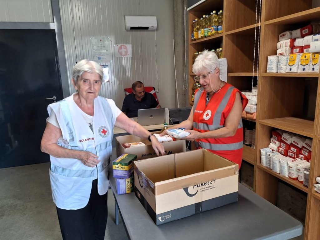 KOPRIVNICA – Srijeda je dan kad u Socijalnu samoposlugu Gradskog društva Crvenog križa Koprivnica korisnici u potrebi dolaze po pomoć. Uz suradnika za humanitarne poslove i koordinaciju volontera Mladena Gabaja tamo ih dočekuju volonteri koji im pakiraju humanitarne pakete. Tako je bilo i u srijedu, 20. kolovoza 2025. godine, kad su volontirale Milica i Dubravka.