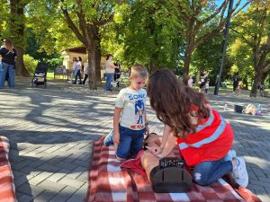 Ovogodišnja tema Svjetskog dana prve pomoći jest „Prva pomoć i klimatske promjene“ zbog sve razornijih posljedica djelovanja klimatskih promjena na ljudsko zdravlje. Stoga su djelatnici GDCK Koprivnica Karlo Ganžulić voditelj Službe za zdravstvene programe i Službu traženja, Petar Mihalec voditelj Službe za pravne poslove i Lana Jakupić projektna asistentica zajedno s volonterkama Gabrijelom Vojvodić, Lucijom Nežić i Nikom Šmic u svrhu edukacije prezentirali građanima vještine pružanja prve pomoći koje mogu spasiti život u takvim trenucima. Tehnika pružanja reanimacije unesrećenoj osobi izazvala je velik interes kod najmlađih te su uz vodstvo volonterki medicinske struke imali mogućnost isprobati na lutki.