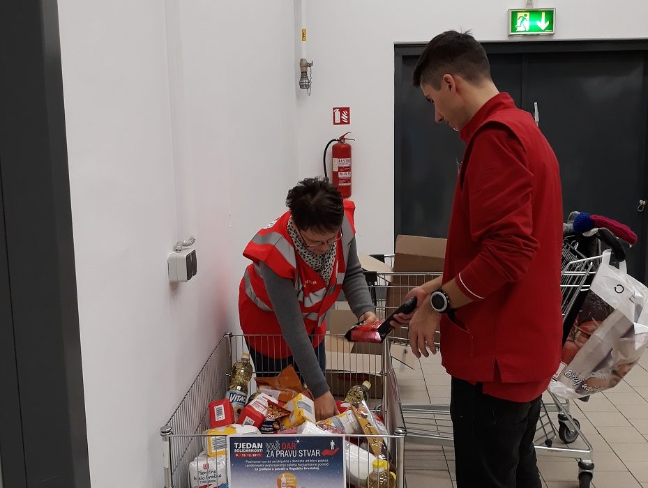 Kako bi privukli što veći broj kupaca da doniraju namirnice za Socijalnu samoposlugu volonteri su u ponedjeljak 11. prosinca 2017. godine dijelili letke kojima su građane informirali o akciji i prikupili oko 200 kilograma raznih namirnica. S obzirom da je košara za namirnice bila postavljena u Kauflandu do petka 15. prosinca prikupljeno je još 80 kilograma prehrambenih namirnica. Sve prikupljeno biti će podijeljeno ovih dana u Socijalnoj samoposluzi obiteljima s područja Koprivnice te se nadamo da ćemo im barem malo uljepšati nadolazeće blagdane, a ovim putem želimo zahvaliti svim dobrim građanima na donacijama koji su nam to i omogućili.