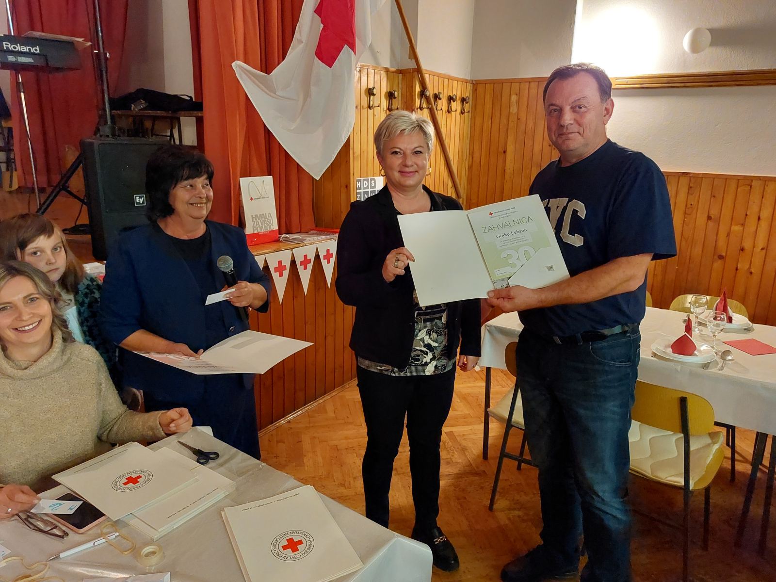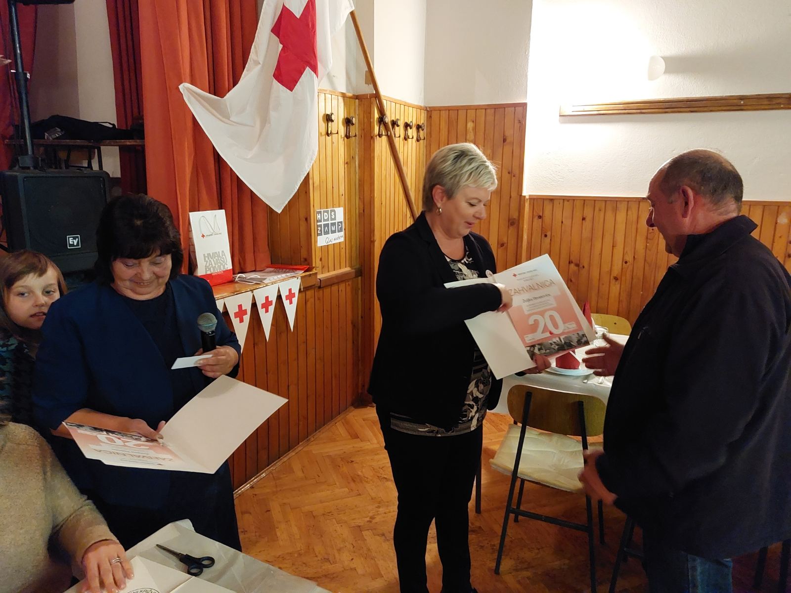 Na svečanosti u Sokolovcu podijeljena su priznanja dobrovoljnim darivateljima za jubilarni broj davanja krvi. Priznanja su primili: