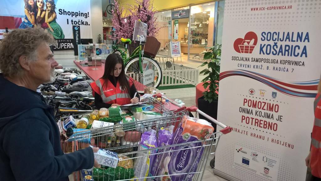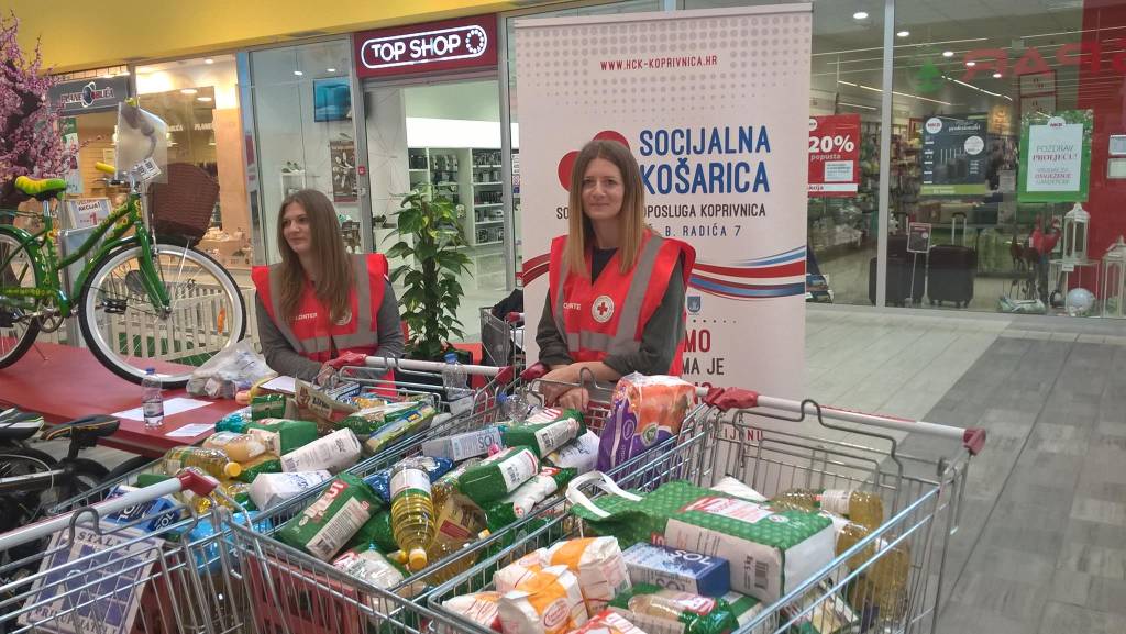 KOPRIVNICA – U subotu 22. travnja 2017. godine uspješno je provedena još jedna akcija prikupljanja donacija za Socijalnu samoposlugu u shopping centru SUPERNOVA. Sugrađani su se i ovaj puta iskazali te donirali 300 kilograma hrane i 38 komada različitih higijenskih potrepština za potrebe Socijalne samoposluge. Akcija je provedena u organizaciji Gradskog društva Crvenog križa Koprivnica uz pomoć uvijek vrijednih volontera.