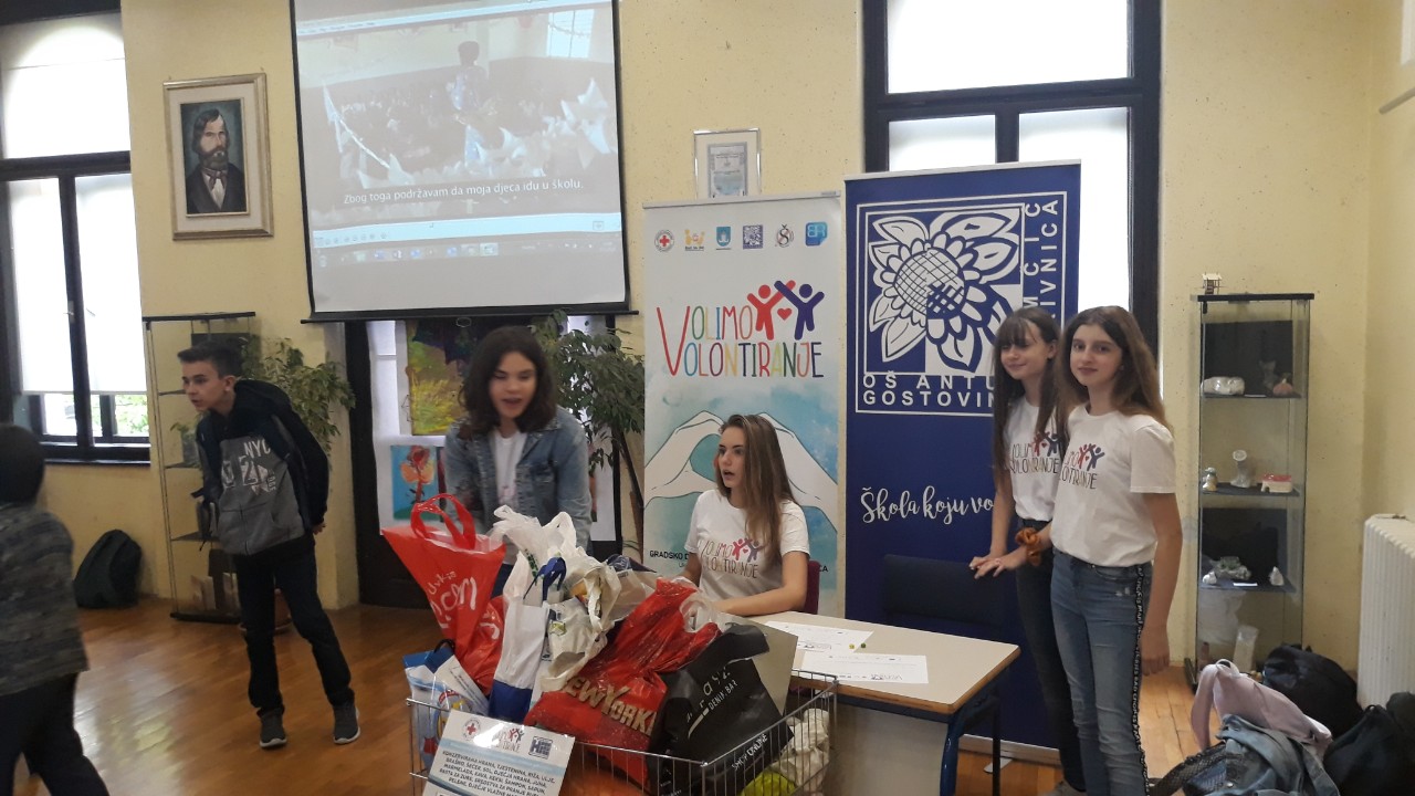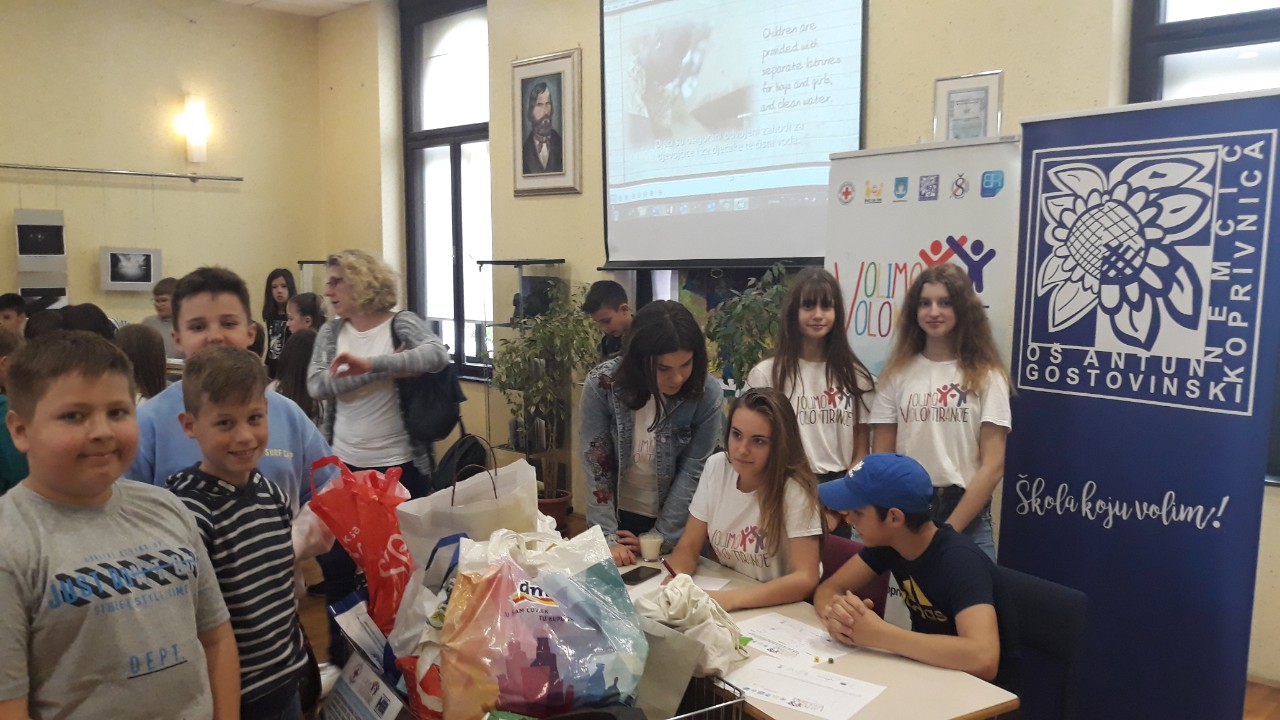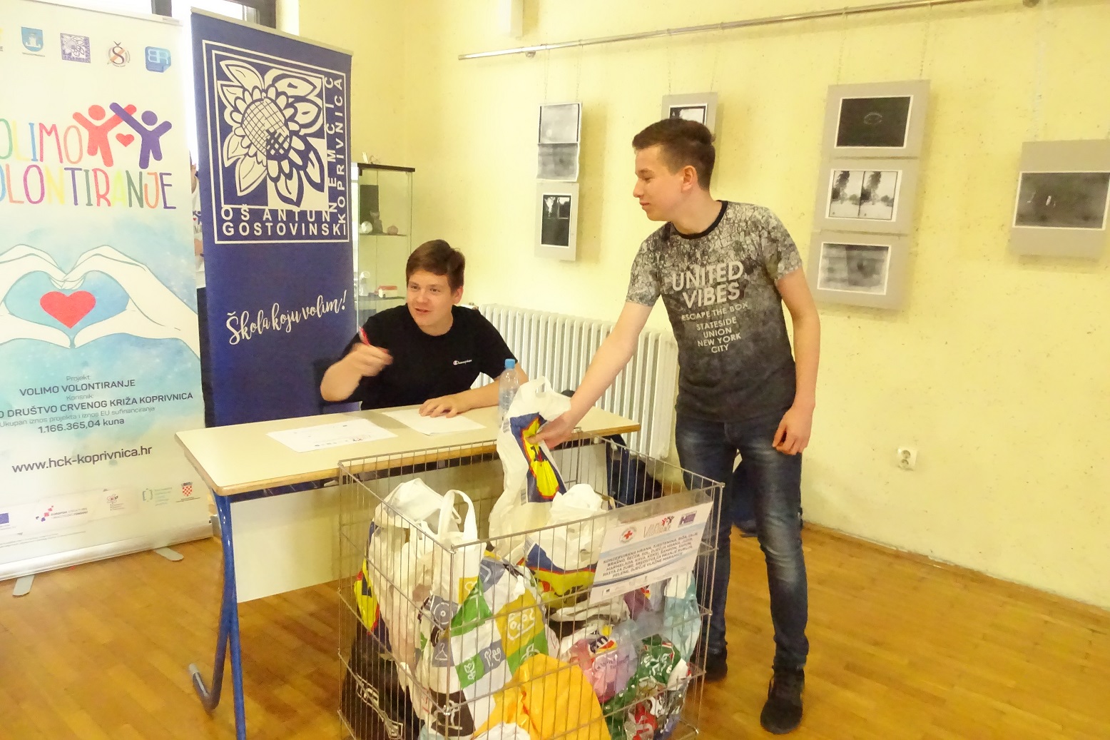 Koprivnica – Učenici Osnovne škole ‘Antun Nemčić Gostovinski’, u suradnji s Gradskim društvom Crvenog križa Koprivnica, prikupili su oko 130 kg raznih prehrambenih namirnica i 61 komad higijenskih potrepština. Ova humanitarna akcija provedena je u ponedjeljak, 27. svibnja 2019. godine, a osmišljena je u sklopu projekta ‘Volimo volontiranje’, a sve donacije namijenjene su korisnicima Socijalne samoposluge.