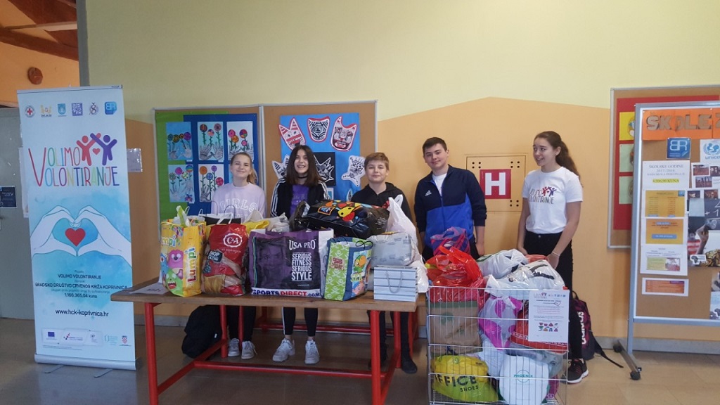 Koprivnica – Učenici Osnovne škole ‘Braća Radić’, u suradnji s Gradskim društvom Crvenog križa Koprivnica, prikupljali su odjeću od svojih kolega i prijatelja učenika i nastavnika na Volonterskoj točki u svojoj školi. Akcija prikupljanja osmišljena je u sklopu projekta ‘Volimo volontiranje’, a sve donacije namijenjene su za socijalno potrebite sugrađane.