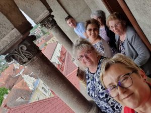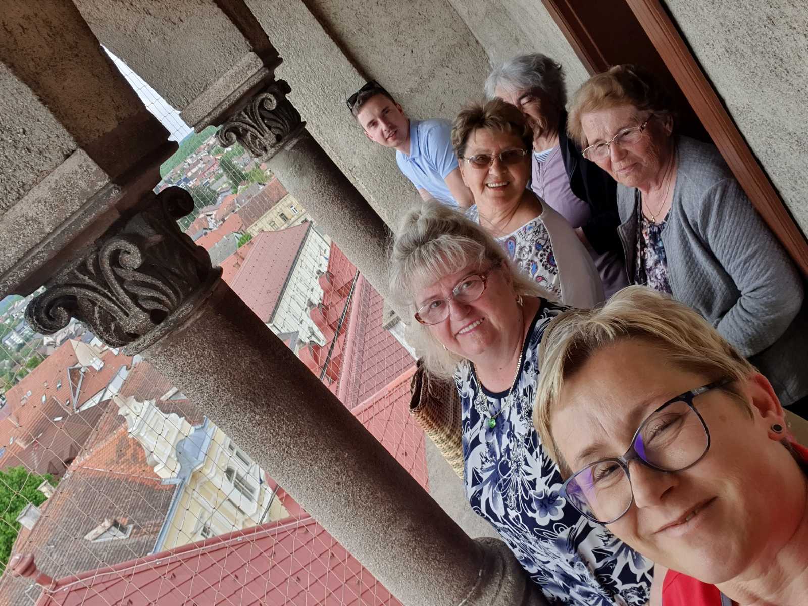 KRIŽEVCI – Članice Kluba “Volonter penzioner” posjetile su u četvrtak, 5. svibnja 2022. godine Križevce. Tijekom šetnje ovim gradom bogate prošlosti razgledale su njegove kulturne i vjerske znamenitosti, posjetile Grkokatoličku katedralu i biskupsku rezidenciju gdje ih je posebno oduševila vrijedna knjižnica, a najodvažnije su se popele na novi vidikovac na Hrvatskom domu i uživale u pogledu na grad.