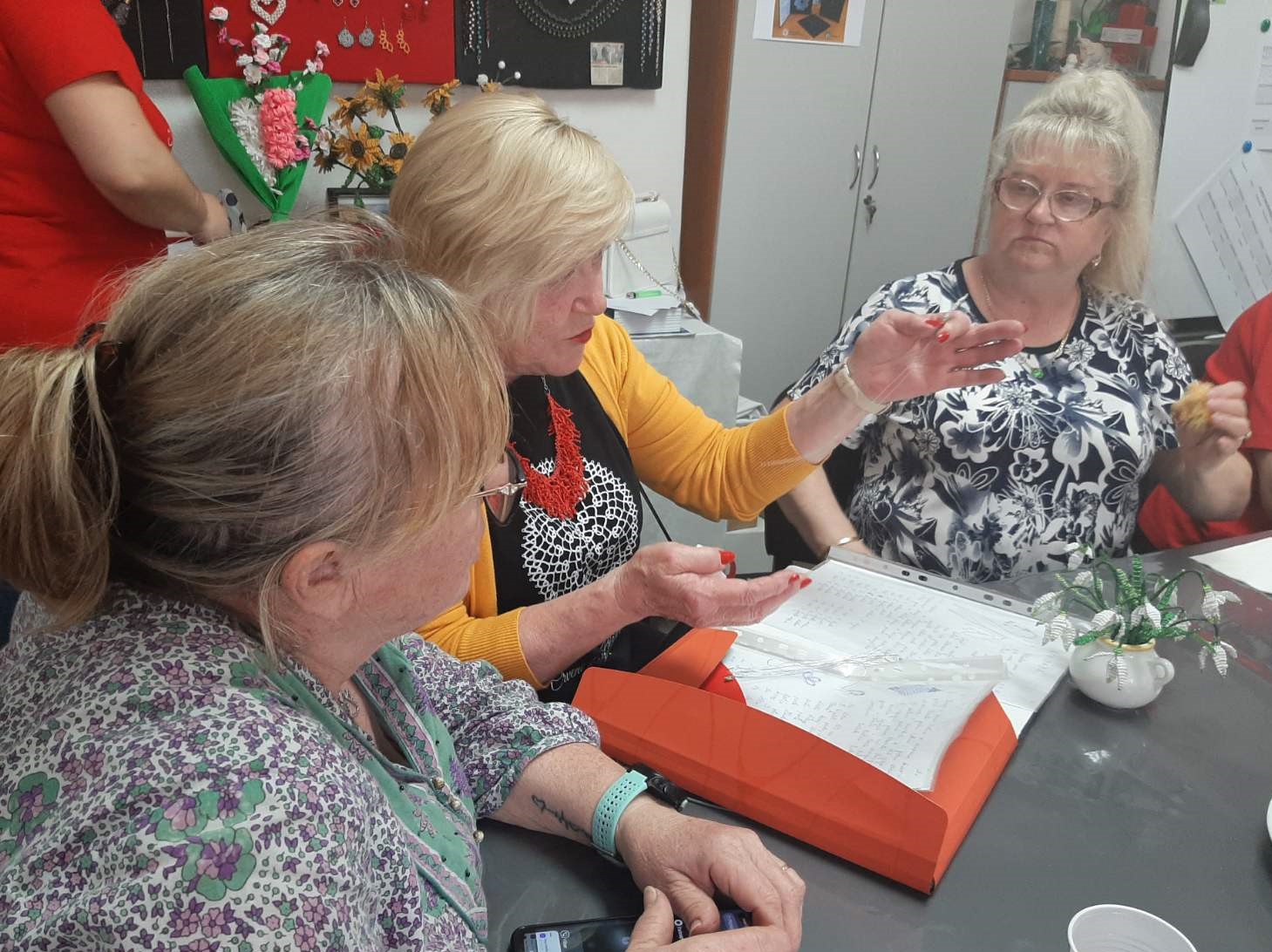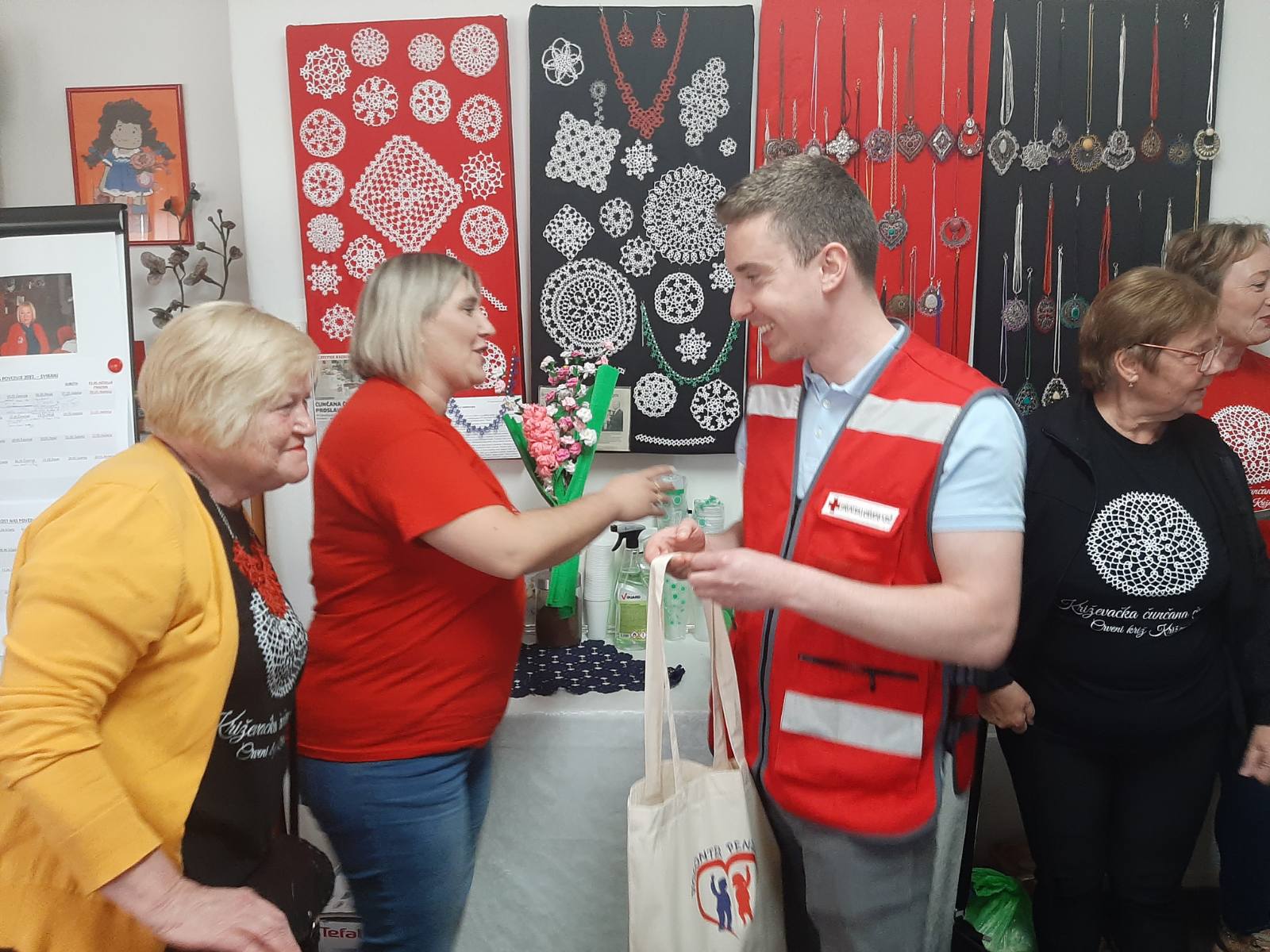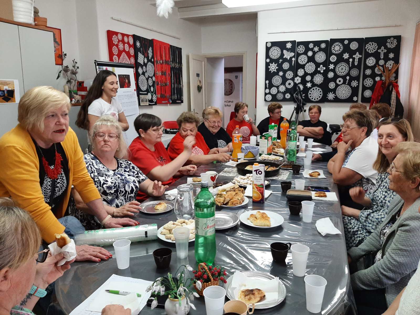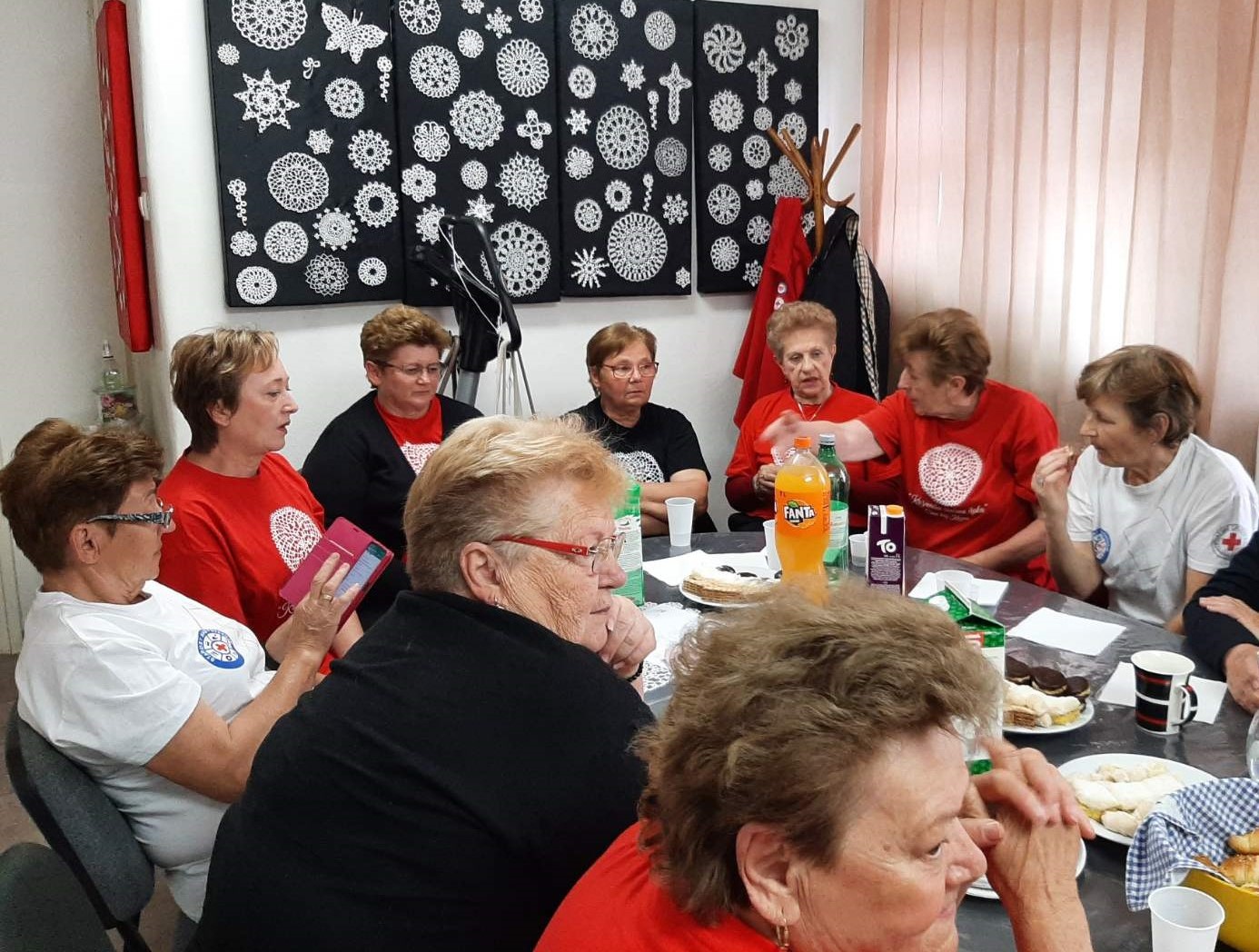 Povod odlaska u Križevce bio je susret s čipkaricama koje djeluju u sklopu dnevnog boravka Gradskog društva Crvenog križa Križevci.  Čipkarice su ugostile kreativne umirovljenice iz Kluba “Volonter penzioner” u prostorijama gdje se redovito okupljaju te im na mini izložbi pokazale čunčanu čipku, nakit i svoje ostale kreativne uratke. U ugodnom druženju razmjenjivale su iskustva o ručnim radovima i različitim kreativnim tehnikama kojima se bave.