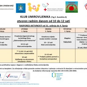 Član Kluba može postati svaki umirovljenik. Svi programi su besplatni. Za učlanjenje samo treba donijeti osobnu iskaznicu i rješenje o mirovini. Klub umirovljenika otvoren je radnim danom od 10 do 12 sati. Za dodatne informacije nazovite 091-260-0066. Umirovljenici, pridružite nam se!